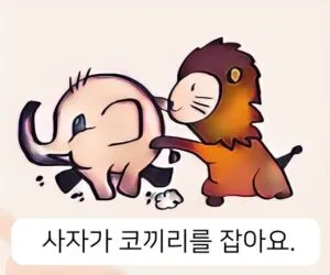 사자가 (lion) 코끼리를 (elephant) 잡아요 (catch).
