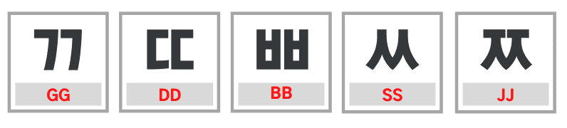 ㄲ (kk), ㄸ (tt), ㅃ (pp), ㅆ (ss), ㅉ (jj)